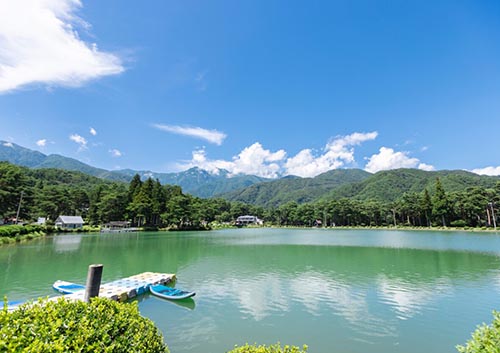 アルプスBASEは、美しい山々や緑豊かな自然に囲まれた絶景のロケーションに位置しています。四季折々の景色を楽しみながら、リフレッシュすることができます。